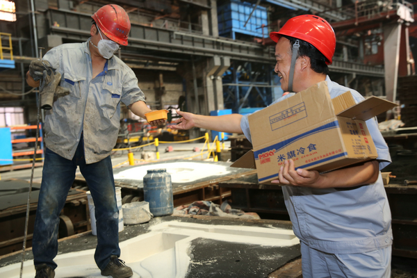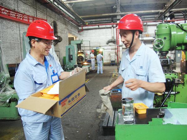 6月26日下午,公司紀(jì)委書記、工會主席侯鴻飛帶領(lǐng)黨群各部門負(fù)責(zé)人及部分分工會主席到機(jī)加分廠、裝配試驗(yàn)廠、鑄造事業(yè)部等生產(chǎn)現(xiàn)場,為一線職工送去冷飲。6月27日,公司工會為全體職工發(fā)放了毛巾和肥皂。