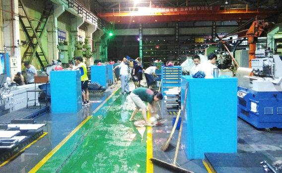 “不好!雨下這么大,一時半會也沒停下來的意思,得去車間里看看什么情況!”面對突如其來的大雨,機加22車間領導迅速趕到車間,并第一時間通知車間搶險救援隊,有些職工也自發趕到生產現場。
