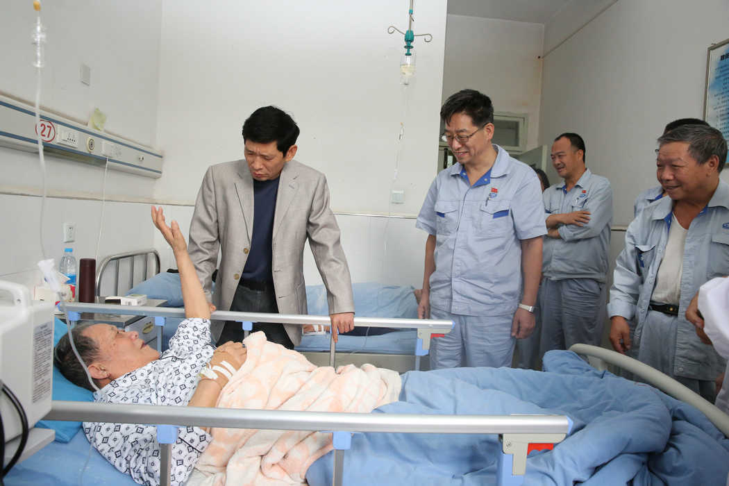 每到一個病房,李臟仁和侯鴻飛一起為生病的職工送上慰問品,詢問他們的病情,叮嚀陪護人員要細心看護,希望住院職工安心養病,早日康復。
