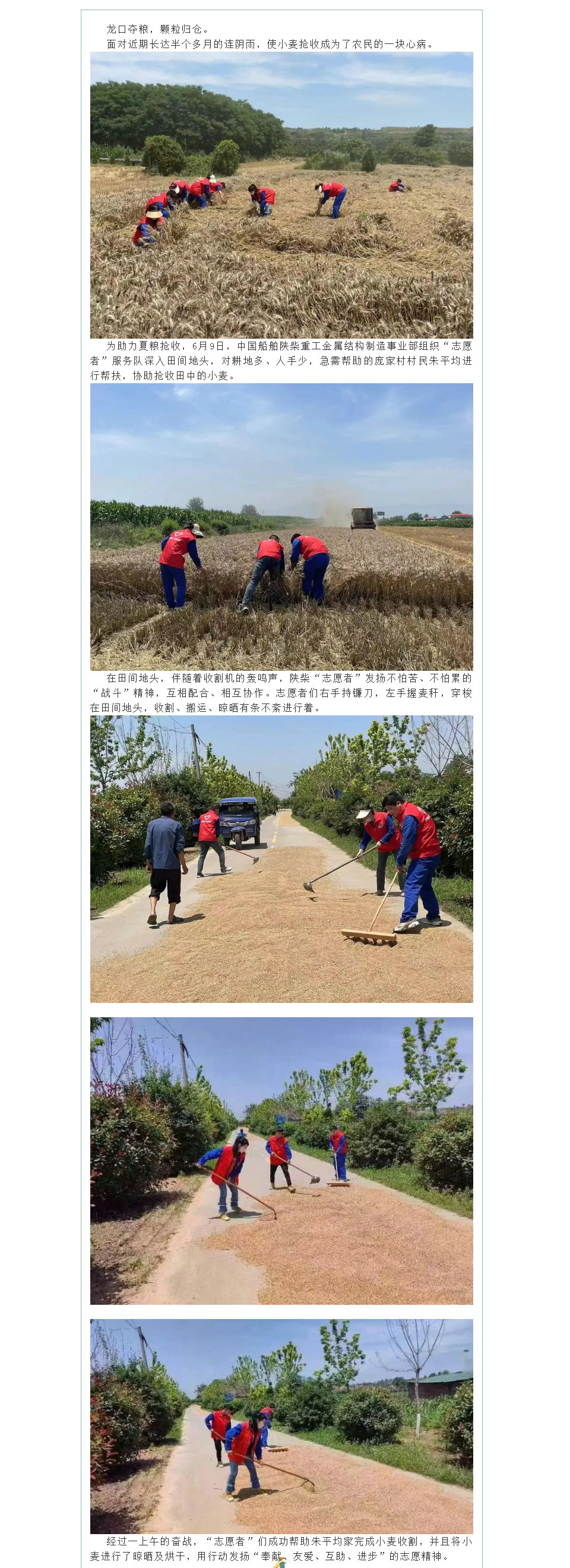 “志愿紅”助力三夏忙——金屬結構制造事業部志愿者開展三夏幫扶搶收活動