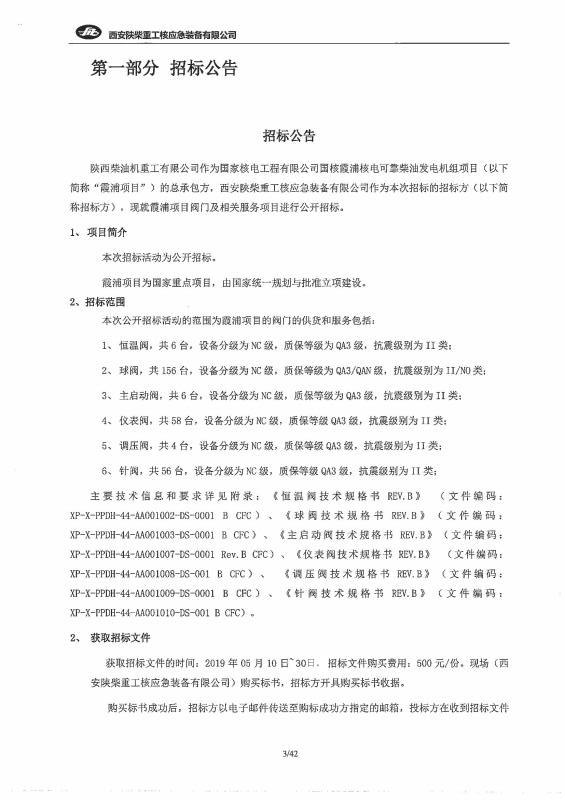 霞浦項目閥門招標公告